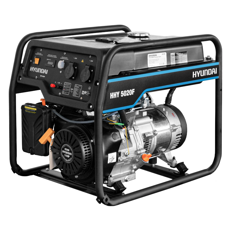 Бензиновый генератор Hyundai HHY 5020F используется в качестве аварийного источника питания для бытовых приборов. Такая модель выручит как на даче, так и на строительной площадке или в домашней мастерской. Мощности в 11 л.с. будет достаточно для питания небольшого дома, где будут работать одновременно несколько потребителей. Например, холодильник, чайник и компьютер.