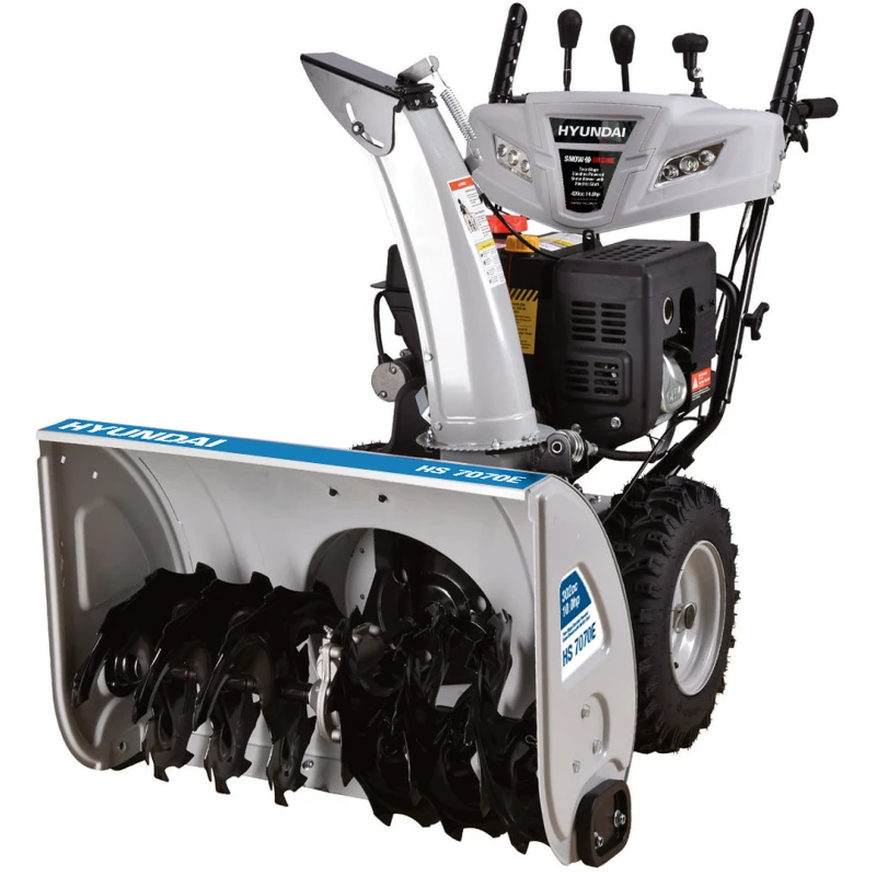 В основе снегоуборщика Hyundai HS 7070E – специализированный зимний двигатель Hyundai ICW Snow Engine мощностью 10 л.с. Наличие устройства запуска от розетки 230В и функции подогрева карбюратора гарантирует, что машина заведется одним нажатием кнопки даже в 30-градусный мороз. Самоходная конструкция с 6 скоростями вперед и 2 назад позволяет подстроить темп движения под плотность снега: от быстрой "прогонки" по свежему снегу до медленного и мощного "вгрызания" в плотный наст. Управление выбросом снега, скоростью и блокировкой дифференциала осуществляется с эргономичной панели оператора с помощью удобных джойстиков.