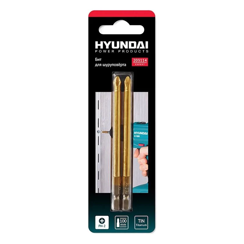 Биты для шуруповерта Hyundai PH2 100мм изготовлены из специальной закаленной хромомолибденовой стали S2 типа.