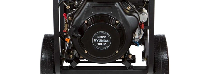 Hyundai DHY 8500LE-3 оснащен фирменным двигателем D500E объемом 498 см³ и мощностью 13 л.с. Благодаря инжекторной системе прямого впрыска топливная смесь подается напрямую в камеру сгорания, что существенно сокращает потребление топлива и уменьшает количество выхлопов. Завести мотор можно как вручную, так и с помощью электростартера.