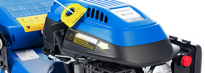В газонокосилке установлен 4-тактный бензомотор Hyundai ICV 140 мощностью 3,5 л.с. Он разрабатывался специально для садовой и сельскохозяйственной техники, а потому выдерживает большие нагрузки и работает с высоким КПД.