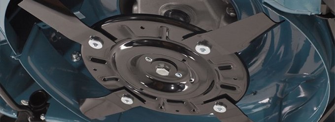 4-лопастной нож имеет изогнутую форму по бокам. Это позволяет создавать вихревой поток, который приподнимает растительность у корней перед резом, а затем направляет обрезки в травосборник. Такая конструкция ножа обеспечивает ровную и равномерную стрижку с первого подхода.