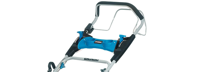Hyundai L 4600S – самоходная модель, поэтому при работе ее не нужно толкать, колеса приводятся в движение двигателем. Для запуска используется ручной стартер. Ручка троса крепится на раме, поэтому вам не придется наклоняться, чтобы завести мотор.