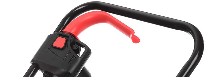 Рычаг выключателя и кнопка предохранителя удобно расположены на рукоятке. Вам не придется никуда тянуться, все под рукой. Осевая регулировка высоты обеспечивает кошение газона на трех уровнях: 20, 40 или 60 мм.