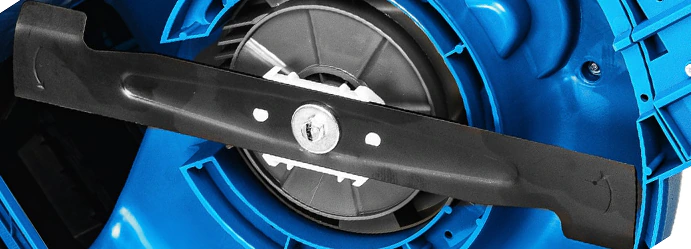Двухлопастной аэродинамический нож вращается со скоростью 3400 об/мин. Мощный воздушный поток уносит в травосборник легкий мусор и листву вместе со скошенной травой. Благодаря этому газон после прохождения косилки остается аккуратным и чисто прибранным.