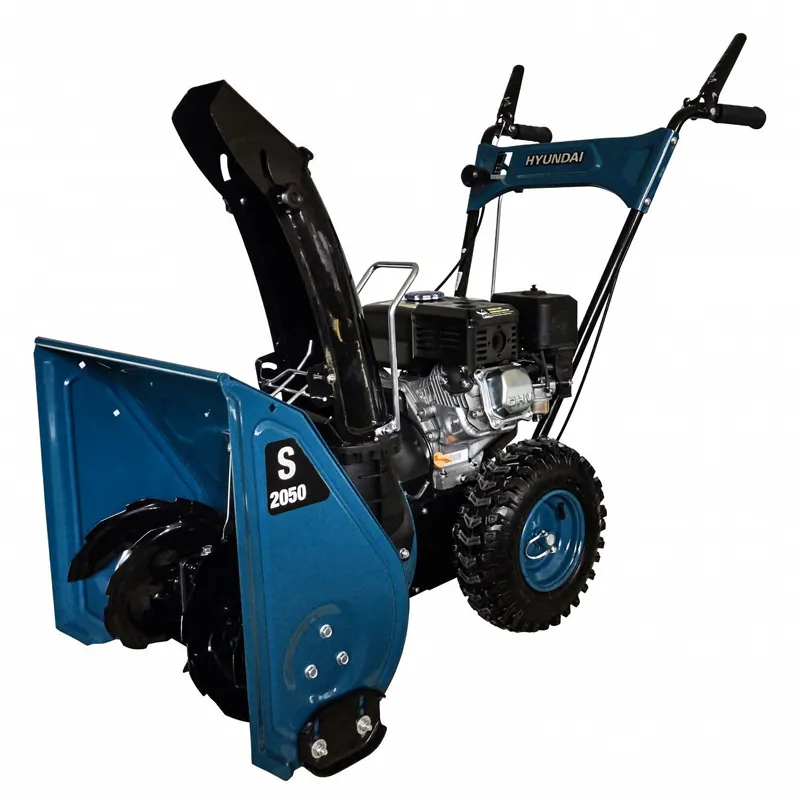 Бензиновый снегоуборщик Hyundai S 2050 оборудован зимним четырехтактным двигателем мощностью 6,5 л.с., который рассчитан на запуск при температуре до -30°С. Остывший двигатель легко заведется при помощи ручного стартера благодаря насосу предварительной подкачки топлива.