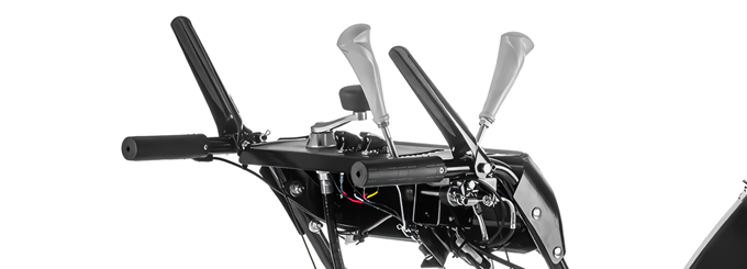 Конструкция снегоуборщика разработана с учетом комфорта пользователя. Облегчить запуск двигателя помогает праймер подкачки топлива и электростартер. Управлять машиной очень просто, ведь все рычаги находятся на передней панели. Чтобы руки не мерзли при работе в мороз предусмотрен подогрев рукояток. LED фара улучшает обзор в пасмурную погоду и в сумерках.