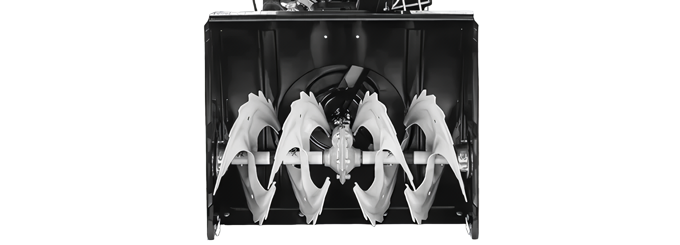 Зубчатые шнеки перемалывают даже плотный, мокрый, слежавшийся снег и наст.