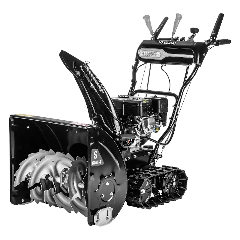 Мощный самоходный бензиновый снегоуборщик Hyundai S 6165-T пригодится владельцам загородных домов для уборки больших и сложных участков, а также поможет расчистить снег в гаражном кооперативе, на тротуарах, парковке перед магазином т.п.