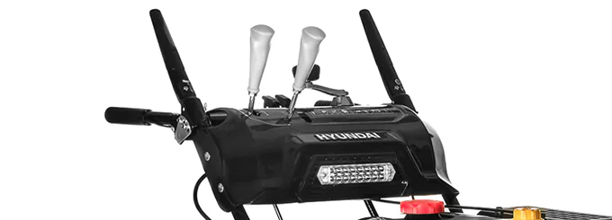 Конструкция Hyundai S 7713-T разработана с учетом удобства пользователя. Все рычаги находятся на главной панели и доступны во время движения. Чтобы руки не мерзли при работе предусмотрен подогрев рукояток. Для улучшения обзора в снегопад, в сумерках и при плохом освещении есть LED фара.