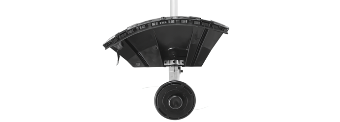 Кожух из прочного пластика снижает риск попадания в оператора травы и мусора из-под режущей части.